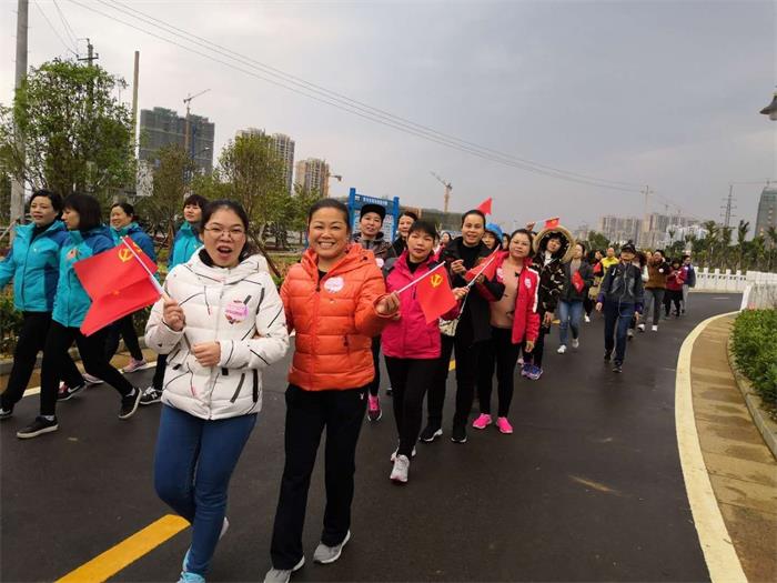 2018年3月8日上午,“巾幗心向黨·踏上新征程”市直機關女干部“環(huán)湖健身走”活動在愛蓮湖公園舉行,義芳副市長參加該項活動,并作了講話,市委副書記鐘得志宣布活動開始,來自市直各單位、國資委系統(tǒng)以及賀州學院等單位共550名女職工從市文化中心前廣場出發(fā),進行全程約3.8公里的環(huán)湖健步走活動。我集團公司楊麗霞等10名女職工參加了該項活動,全面展示了我集團公司女職工良好的精神風貌。