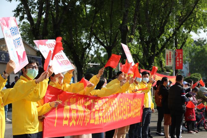 4月15日下午,賀州支援湖北醫(yī)療隊33名隊員圓滿完成工作任務凱旋而歸。賀州正贏實業(yè)公司黨支部組織全體黨員干部職工一行到賀州大道迎接英雄歸來,開展“致敬英雄,擔當作為”主題黨日活動。