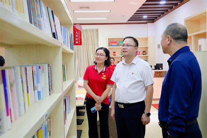 在“紅灣”主題閱讀體驗區(qū),黃俊詳細了解了“紅灣”主題閱讀區(qū)建設情況。黃俊指出,“紅灣”是廣西黨員教育在平臺一體化和內(nèi)容一體化建設的積極探索,是助力基層黨組織建設的生動實踐,是推動黨員經(jīng)常性教育常態(tài)化長效化的創(chuàng)新探索。要進一步完善內(nèi)部基礎設施,強化品牌建設,為黨員干部群眾提供一個有溫度、可感知的主題閱讀“港灣”。