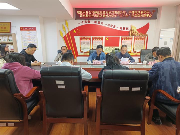 水務(wù)公司召開本公司“三個年”動員部署會,會議強調(diào),要聚焦“是否敢想敢闖、是否敢試敢干、是否敢學(xué)敢行、是否敢比敢超”四個層面查找解決問題,以雷霆萬鈞之勢抓好各項工作落實落細,堅決反對形式主義、官僚主義,重實效強實干抓落實,在解決水務(wù)工作具體問題上下功夫。勇于扛起政治責(zé)任,努力在“三個年”行動中形成一批實踐、理論和制度成果。