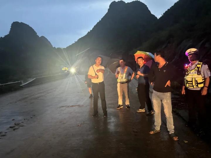 搶險(xiǎn)隊(duì)伍分組行動(dòng),逆“水”而行,默默堅(jiān)守,有的負(fù)責(zé)在水浸路段設(shè)置警示牌和標(biāo)志牌,提醒過往車輛注意安全;有的負(fù)責(zé)清理路面上的積水、泥石、倒伏路樹等障礙物,確保路面通暢;還有的負(fù)責(zé)巡查公路沿線設(shè)施和邊坡落石路段,及時(shí)發(fā)現(xiàn)并處理安全隱患,他們的身影成為了抗汛保暢通最美的風(fēng)景線。經(jīng)過5個(gè)小時(shí)的緊張搶險(xiǎn),北環(huán)路沿線的落石和泥土被全部清理完畢,道路恢復(fù)了暢通。