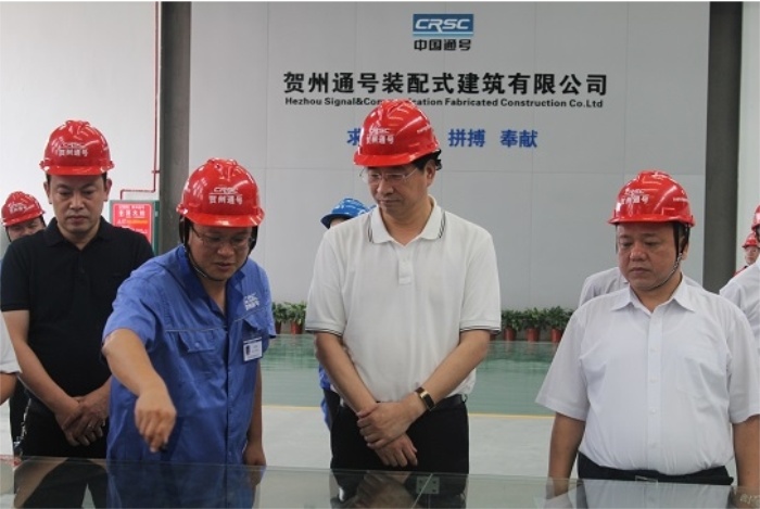 6月12日上午,廣西壯族自治區(qū)住建廳廳長(zhǎng)周家斌一行到賀州通號(hào)裝配式建筑有限公司開(kāi)展調(diào)研。
